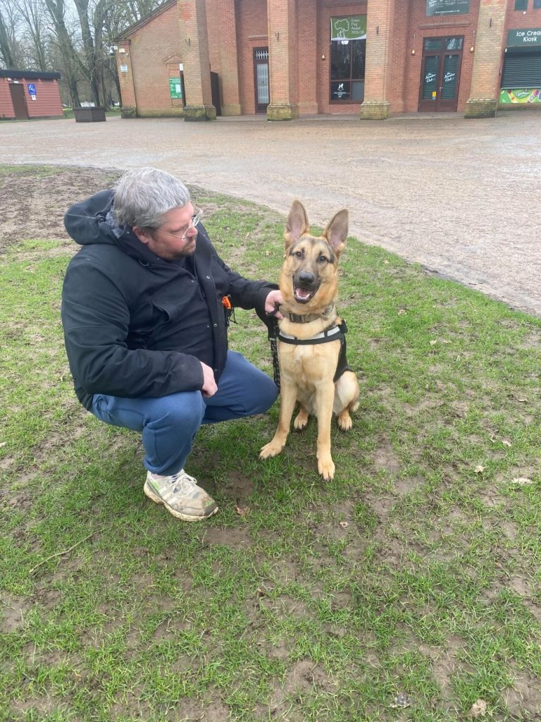 The German shepherd was transformed from reacting severely to any dog that moved to a happy calm dog in one reactivity session